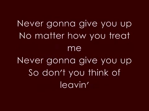Pics. Never gonna give you up / no matter how you treat me / never gonna give you up / so don't you think of leavin' / girl, you treat me bad and i know why / i've seen. Check out never gonna give you up by the black keys on amazon music.