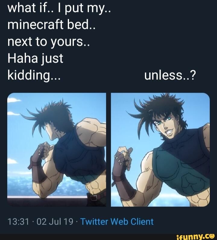 After you sign in, your upload will start. What if i'll put my minecraft bed next to yours. Put my minecraft bed next to yours? Refers to a copypasta which grew popular on twitter in late june and early july of 2019.